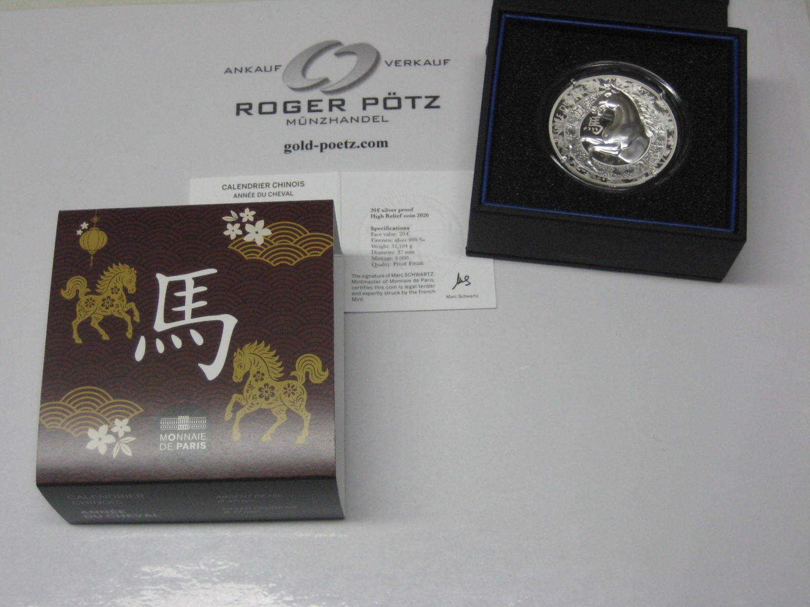 20 Euro Jahr des Pferdes Silber 1 oz HR PP 2026 Frankreich