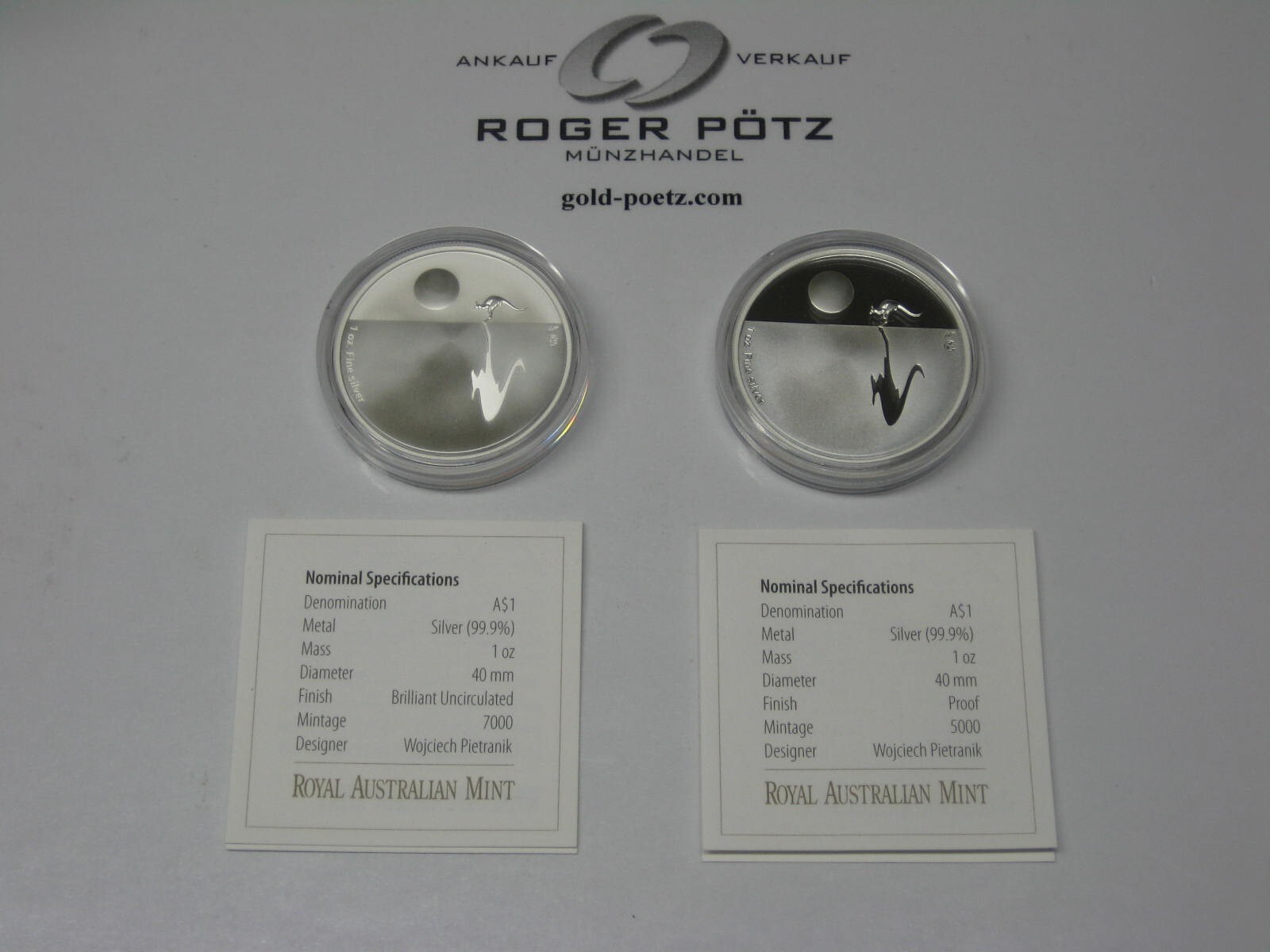 Australien 2 x 1 Dollar Silber bu und PP 2010 Kanguru Sunset 2010 Privymark