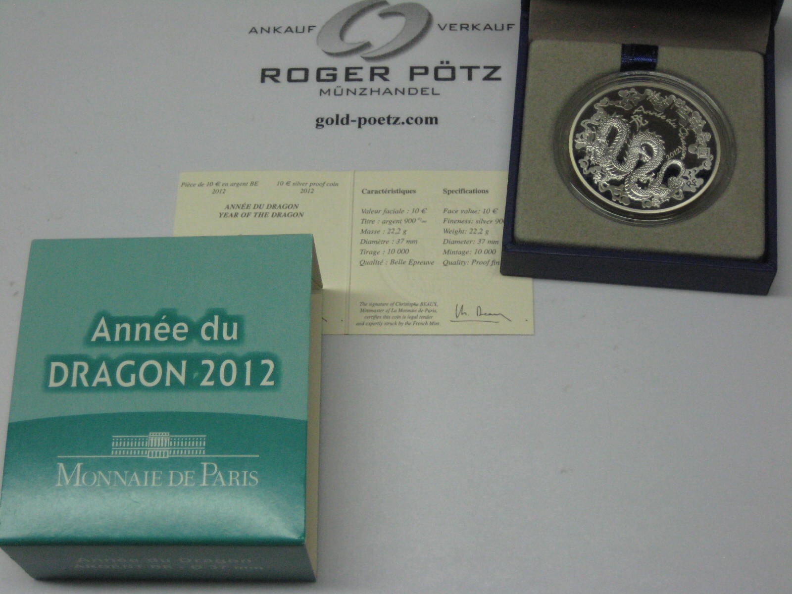 10 Euro Jahr des Drachen Silber PP 2012 Lunarserie I