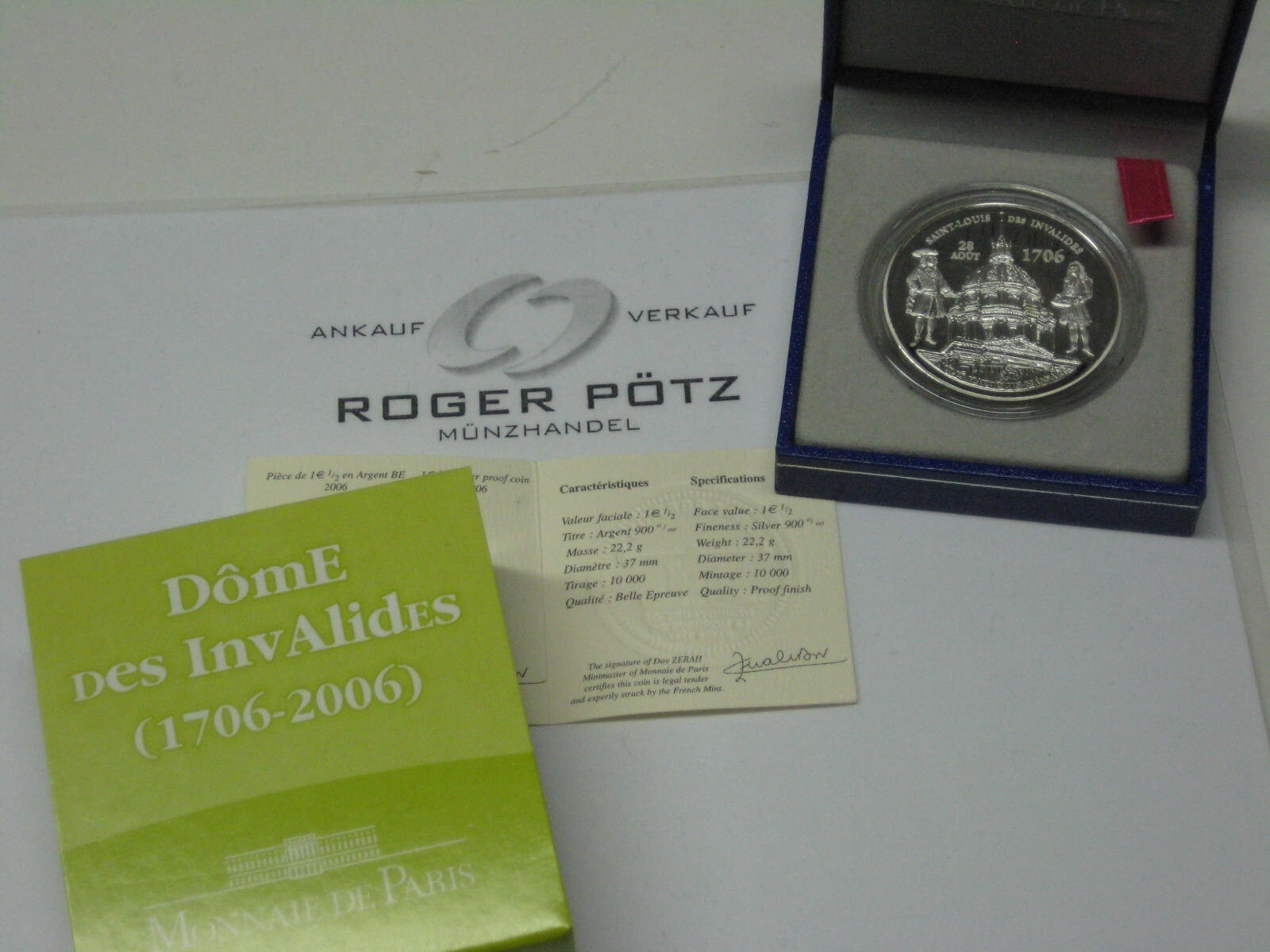 1,50 Euro Frankreich Silber PP 2006 Invalidendom